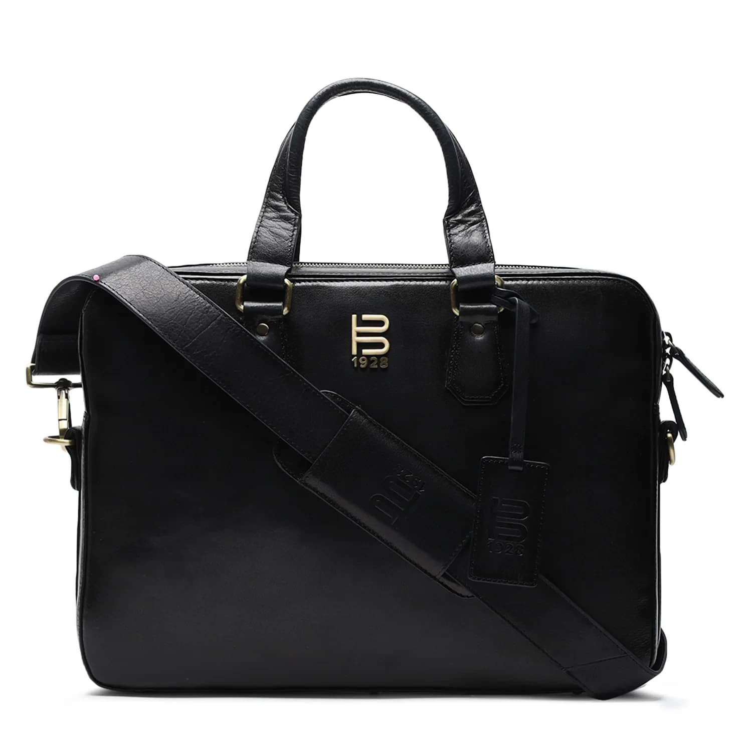 Indulge in the timeless sophistication of this classic leather laptop bag, with its emblematic blue hue that adds a touch of subtle elegance. It's the ideal accessory for a productive work day.