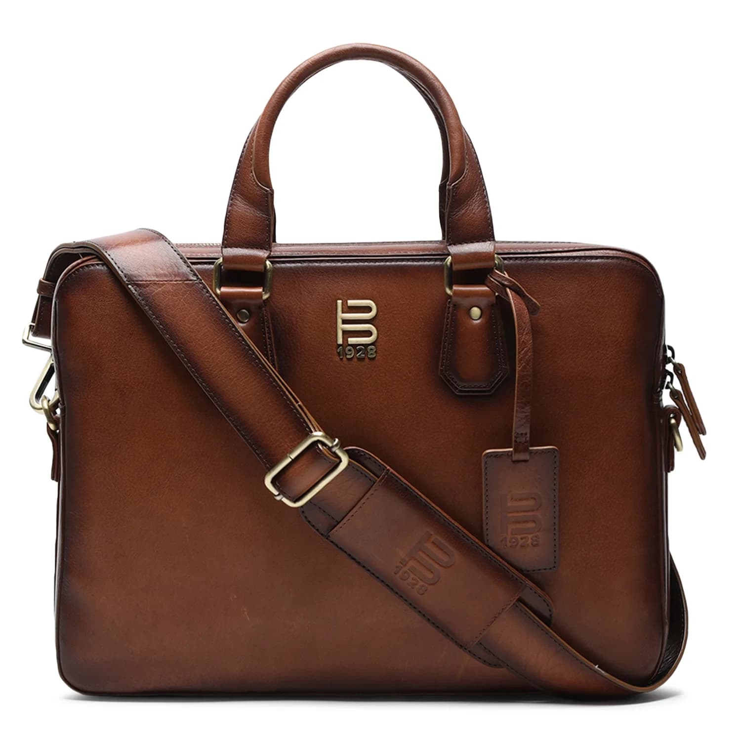 Indulge in the timeless sophistication of this classic leather laptop bag, with its emblematic mid-brown hue that adds a touch of subtle elegance. It's the ideal accessory for a productive work day.