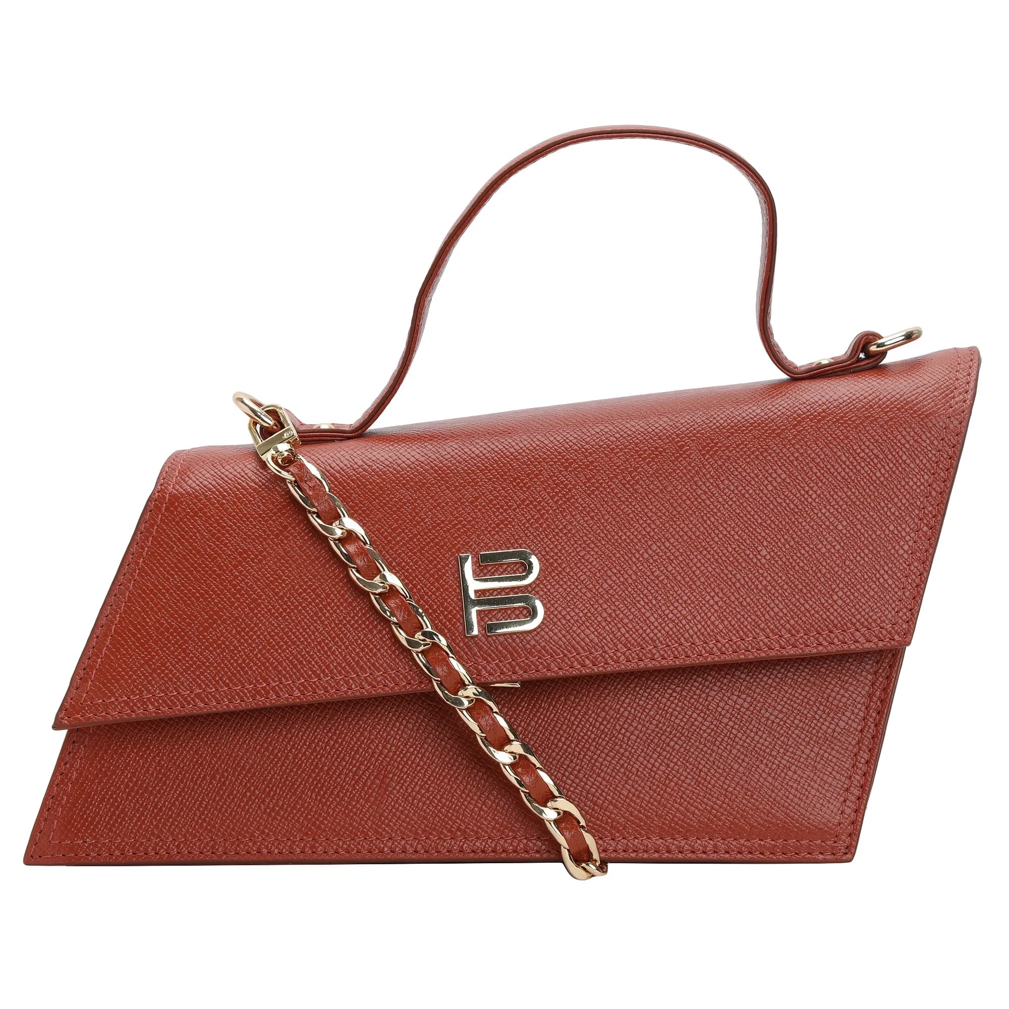 Stand out with understated elegance with BAGATT mid-brown leather crocodile-print top handle bag – a fusion of edgy sophistication and timeless flair. Complete with a chic push lock and flap opening.