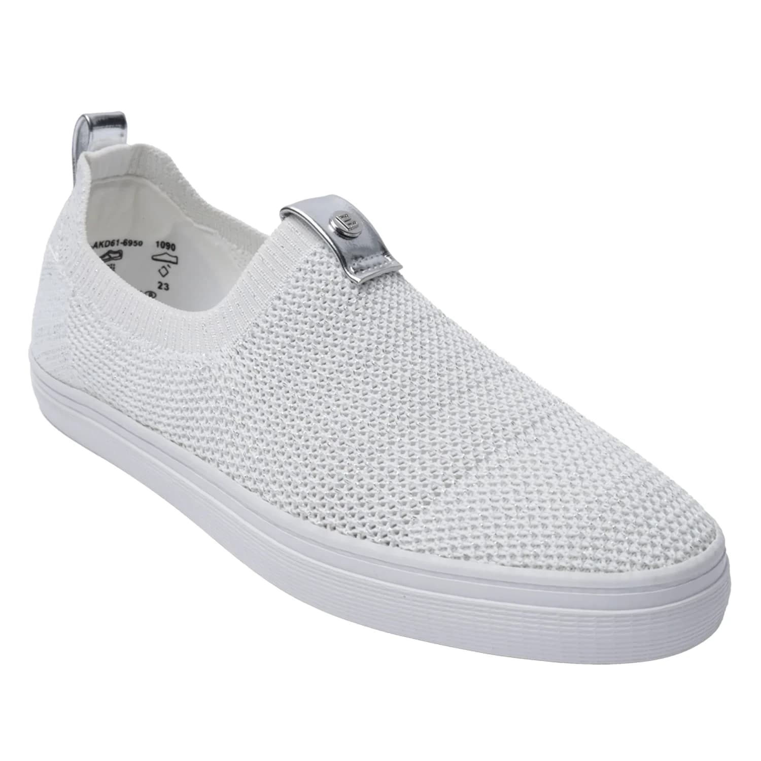 Immerse in earthy allure with Lali White/Silver casual slip-ons. Textile sophistication meets playful chic. Elevate your style by pairing with sleek culottes for a stunning, uniquely classy statement.
