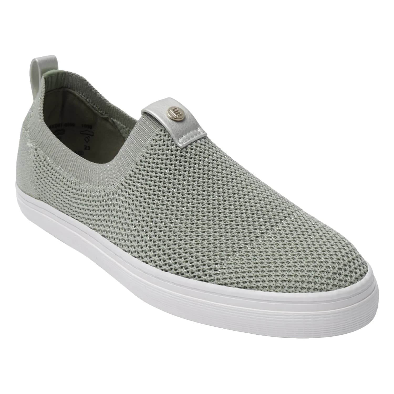 Immerse in earthy allure with Lali Light Green/Gold slip-ons. Textile sophistication meets playful chic. Elevate your style by pairing with sleek culottes for a stunning, uniquely classy statement.