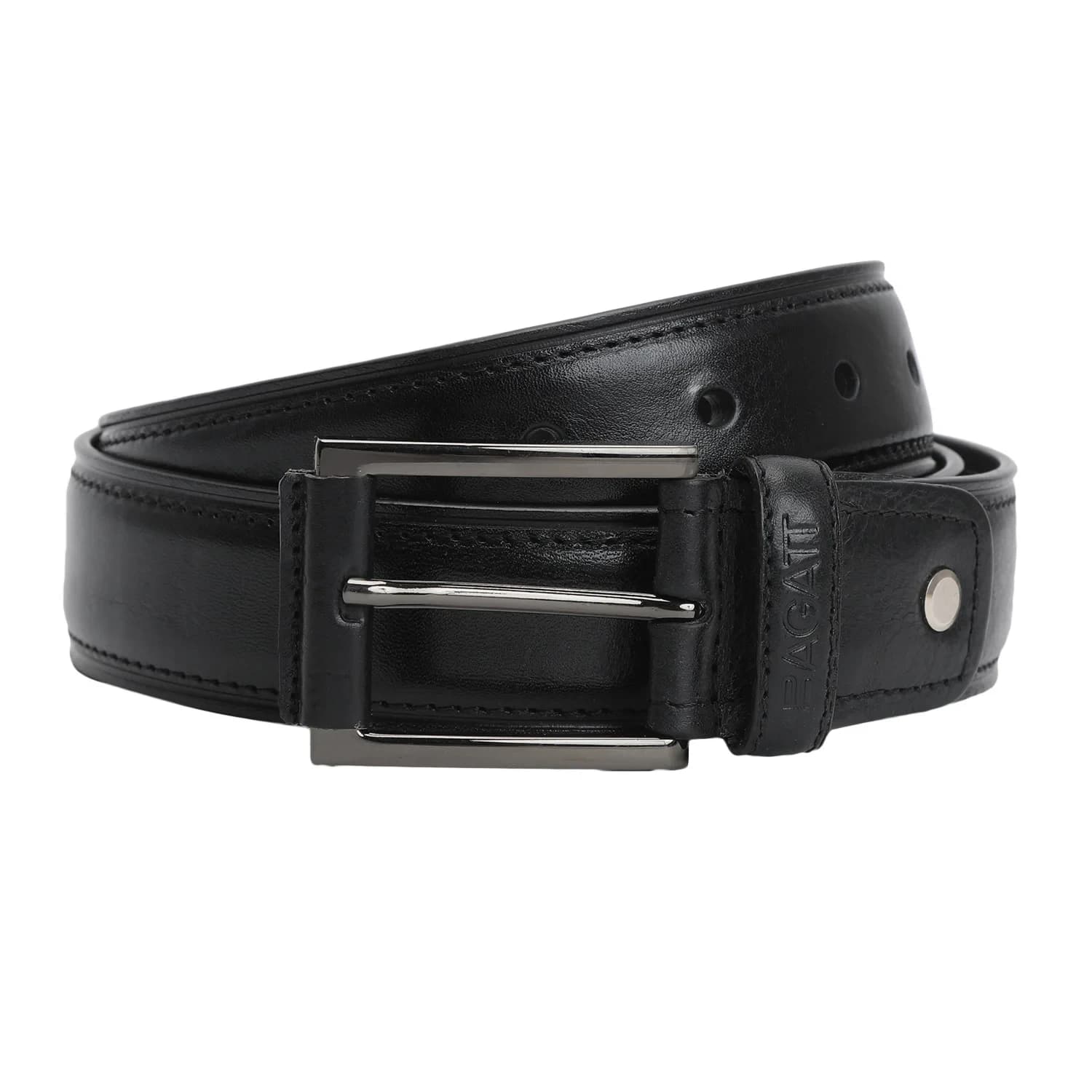 Refine your look effortlessly with BAGATT black leather belt. Its sleek metallic buckle, enduring quality and impeccable craftsmanship make it a dependable accessory for any occasion.