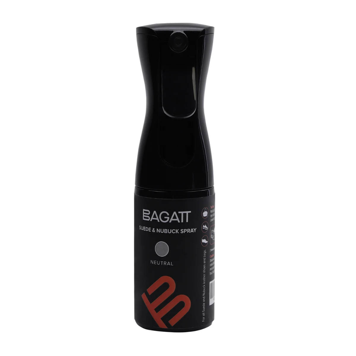 Water based BAGATT Suede & Nubuck leather care spray renovates colors, conditions and nourishes the leather keeping it soft and supple. It comes in an innovative bottle which is easy to use. It is made of special formulations and imported raw materials which exceeds European standards.